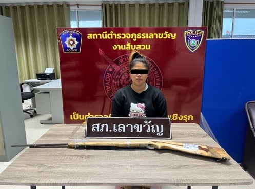 อาวุธปืนยาวแบบตีข้าง (ปืนแก๊ป) แบบไทยประดิษฐ์ ไม่ปรากฏเครื่องหมายทะเบียน จำนวน ๑ กระบอก