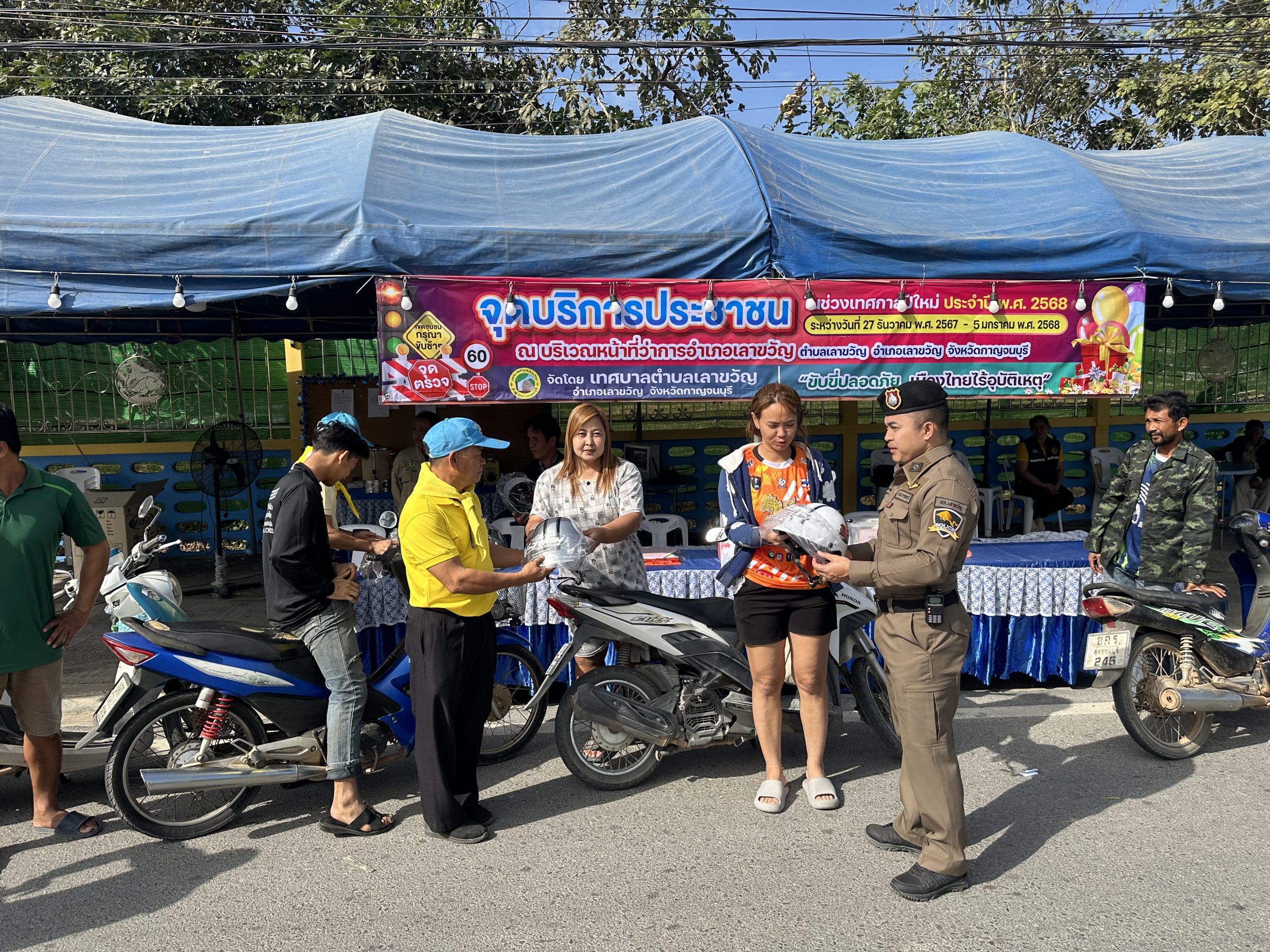 ขับขี่ปลอดภัย เมืองไทยไร้อุบัติเหตุ ช่วงเทศกาลปีใหม่ 2568 แจกหมวกนิรภัยให้กับประชาชน ณ จุดบริการประชาชนหน้าที่ว่าการอำเภอเลาขวัญ