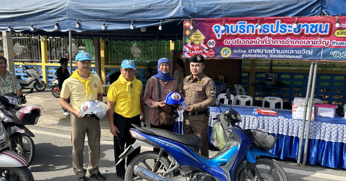 ขับขี่ปลอดภัย เมืองไทยไร้อุบัติเหตุ ช่วงเทศกาลปีใหม่ 2568 แจกหมวกนิรภัยให้กับประชาชน ณ จุดบริการประชาชนหน้าที่ว่าการอำเภอเลาขวัญ