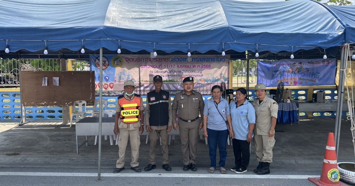 พ.ต.ท. ธวัช กรุยเปรียง สว.อก.สภ.เลาขวัญ ตรวจเยี่ยม จุดบริการประชาชนหน้าที่ว่าการอำเภอเลาขวัญในช่วงเทศกาลสงกรานต์ 2568 พบเจ้าหน้าที่ตำรวจ ฝ่ายปกครอง สาธารณสุข และ อป.พร อยู่ปฏิบัติหน้าที่