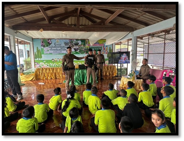 ปฏิบัติหน้าที่ร้อยเวร 20 ,สายตรวจรถยนต์ , จราจร มาให้ความรู้เรื่อง “หนี ซ่อน สู้” แก่นักเรียนโรงเรียนบ้านหนองไก่ต่อ ต.หนองโสน อ.เลาขวัญ จ.กาญจนบุรี