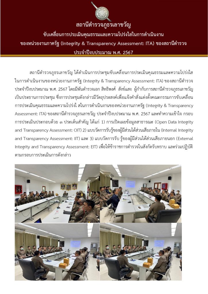 การประเมินคุณธรรมและความโปร่งใสในการดำเนินงานของหน่วยงานภาครัฐ (Integrity and Transparency Assessment : ITA) ประจำปีงบประมาณ พ.ศ. 2567